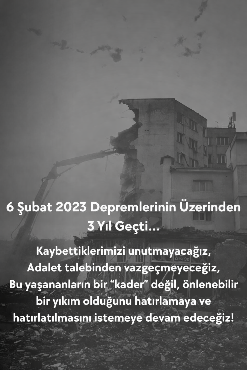 Bu yaşananların bir “kader” değil, önlenebilir bir yıkım olduğunu hatırlatmaya ve hatırlatılmasını istemeye devam edeceğimizi tekrar ediyoruz. .
