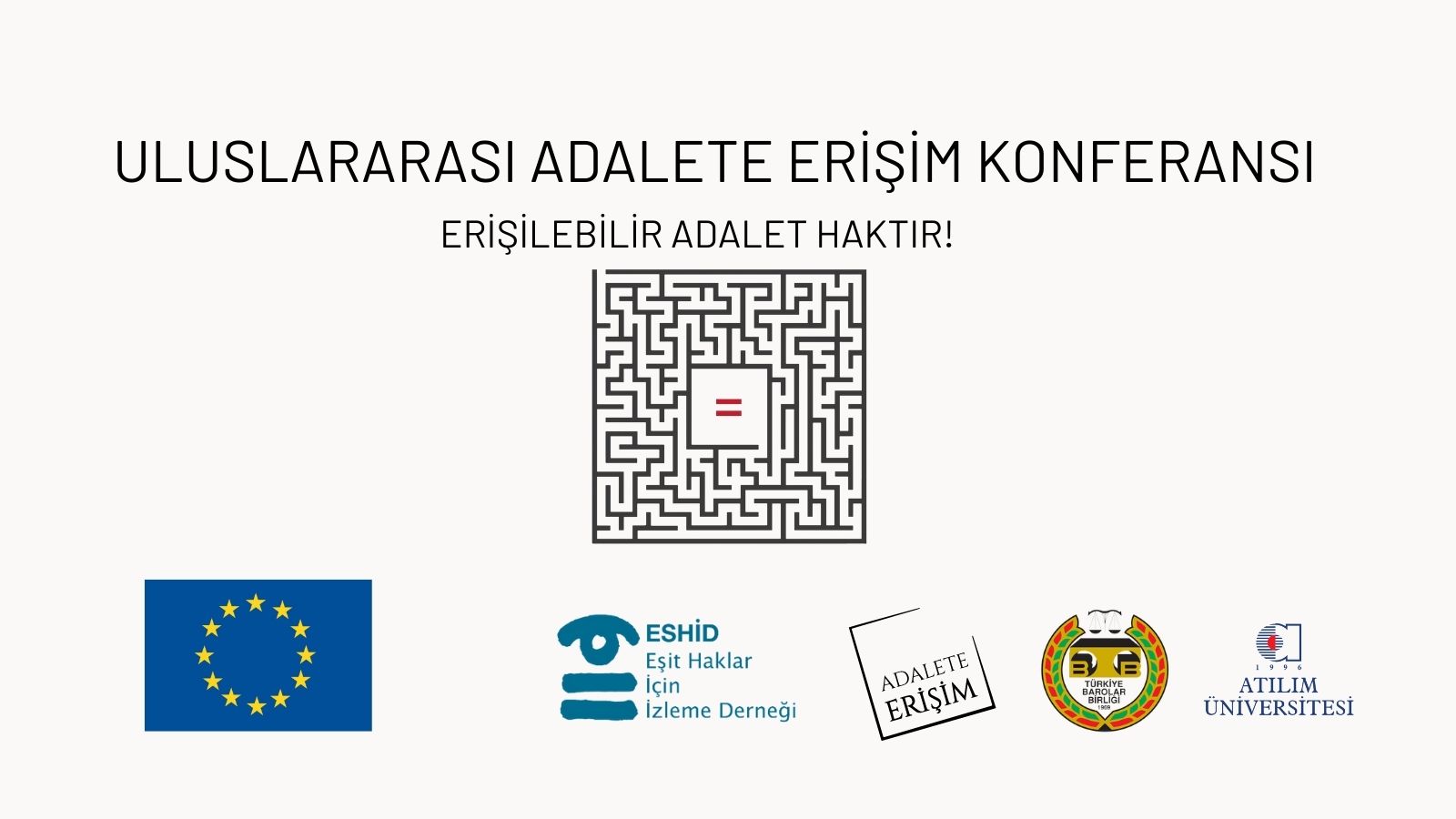 Eşit Haklar için İzleme Derneği (ESHİD) tarafından yürütülen ve Avrupa Birliği Türkiye Delegasyonu Demokrasi ve İnsan Hakları Avrupa Aracı tarafından finanse edilmekte olan “Dezavantajlı Grupların Adalete Erişiminin Güçlendirilmesi Projesi” kapsamında 22-23 Ekim 2022 tarihlerinde Türkiye Barolar Birliği ve Atılım Üniversitesi ortaklığında Dezavantajlı Grupların Adalete Erişimi temalı Uluslararası Adalete Erişim Konferansı düzenlenecektir.
