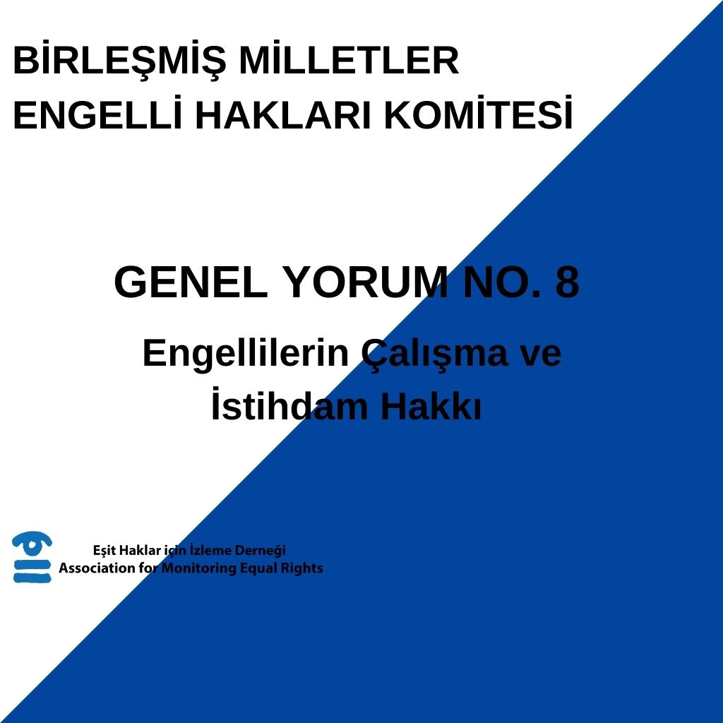 Birleşmiş Milletler Engelli Hakları Komitesi Engellilerin Çalışma ve İstihdam Hakkına Dair 8 Sayılı Genel Yorum (2022) Türkçe Çevirisinin tamamına erişebilmek için tıklayınız .