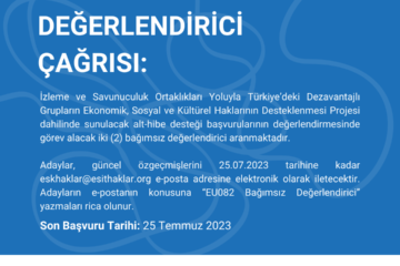 Ayrımcılığa Karşı Birlikte: Ayrımcılık Mağdurlarının Adalete Erişiminin İyileştirilmesi İçin Bir Sivil Toplum Koalisyonu İnşa Edilmesi” Projesi Konu: “Ayrımcılığa Karşı Hibe Programı” Bağımsız Değerlendirici İlanı Eşit Haklar İçin İzleme Derneği (ESHİD) ve Hollanda Helsinki Komitesi (NHC), AB tarafından finanse edilen, demokrasi, insan hakları ve temel özgürlüklerin korunması ve geliştirilmesinde sivil toplumu desteklenmesine Devamı
