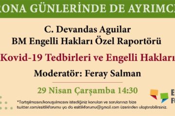 ILO, UNICEF, Birleşmiş Milletler Engelli Hakları Ortaklığı (UNPRPD), International Disability Alliance (IDA), BM Engelli Hakları Özel Raportörü’nün işbirliğinde yayımlanan “Covid-19 (Kovid-19) Tedbirlerinde Engelliliği Kapsayıcı Sosyal Koruma” bilgi notunun gayrı resmi çevirisi, Eşit Haklar İçin İzleme Derneği tarafından yapılmıştır. Covid-19 pandemisi ve pandeminin sosyo-ekonomik sonuçları, halihazırda yaşanan eşitsizlikleri derinleştirmektedir. Engelli hakları Devamı